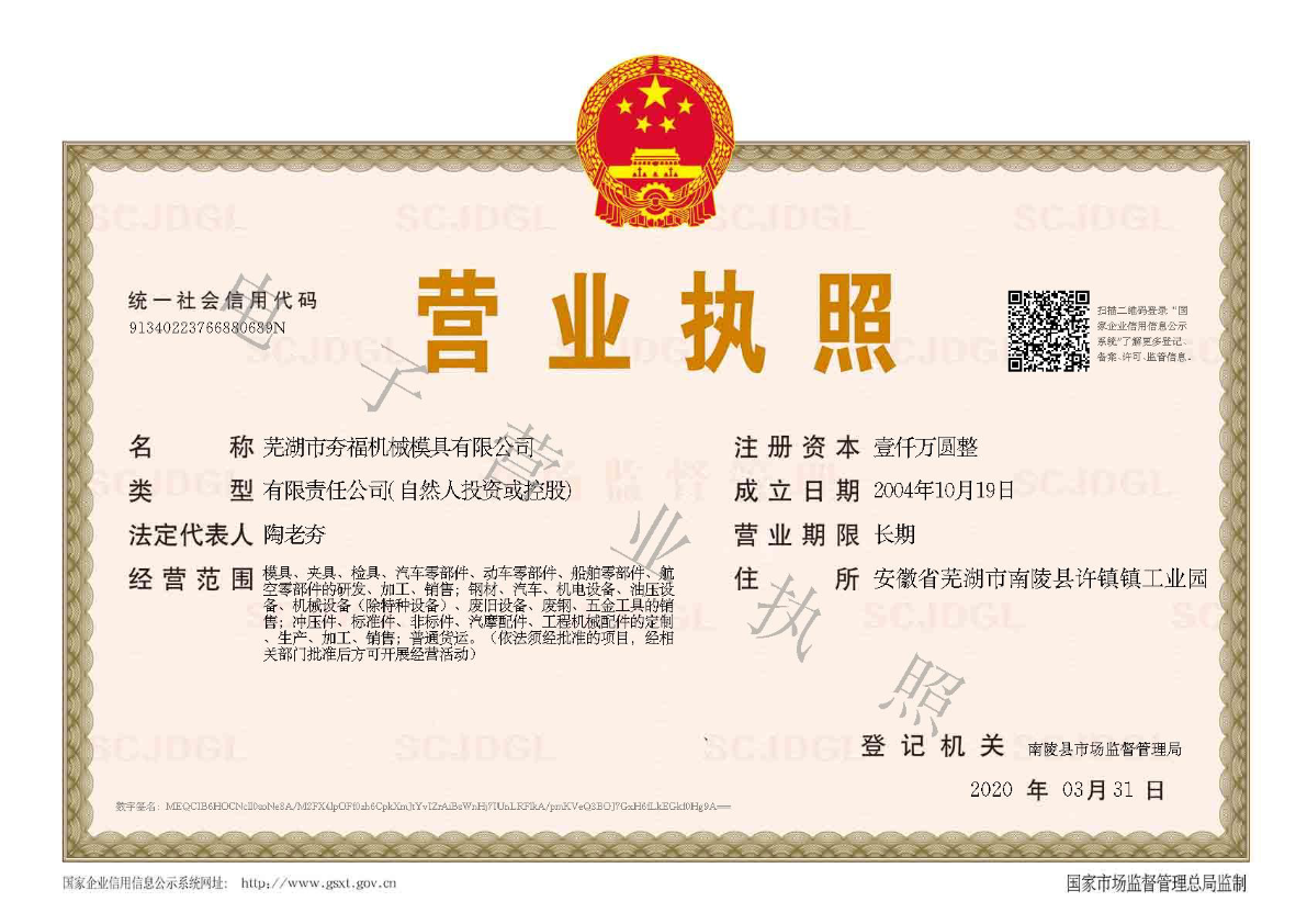 - 蕪湖市夯福機(jī)械模具有限公司于2022年5月20日出具了質(zhì)量信用報(bào)告,本著客觀(guān)、公正的態(tài)度進(jìn)行編寫(xiě),報(bào)...